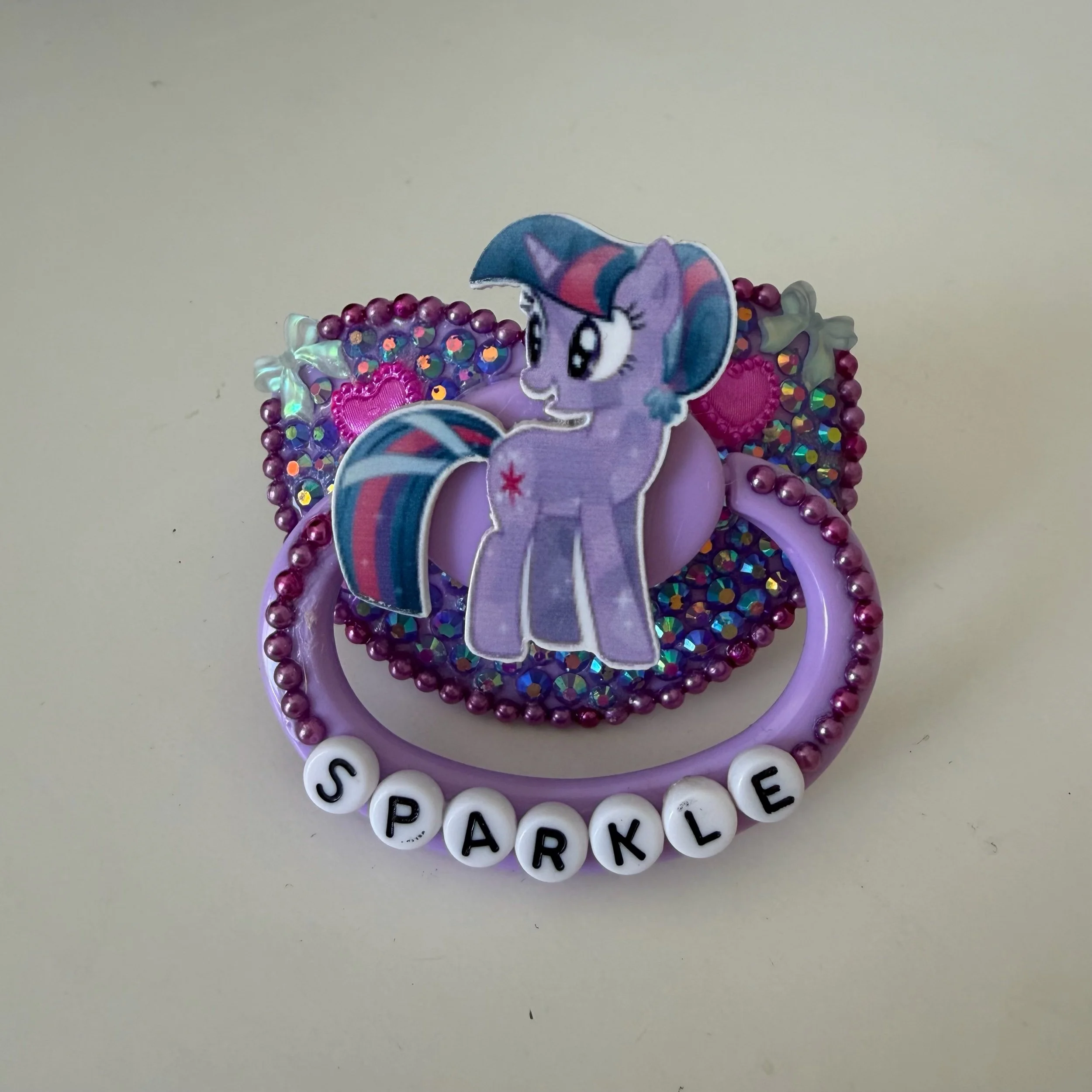 Don’t forget your paci, little one! Each beautiful deco pacifier is wholly handmade, utilising a variety of deco materials to create a unique piece perfect for your collection, comfort and content! Made on a standard adult sized shield and teat combo. Whilst the glue used is heavy duty, please be sure to handle with care, store appropriately, and wash often (teat only). As the item is handmade, and glue reacts differently to various storage conditions, imperfections may occur. Unless alterations to the deco are requested, which can be completed at NO additional cost (simply reach out via email to discuss your own) the item sold is as appears in photograph.