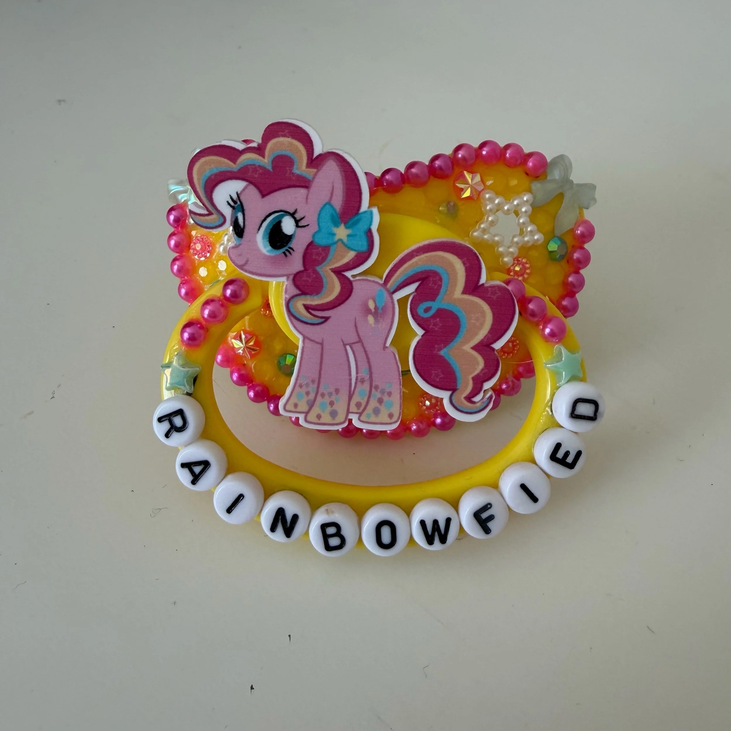 Don’t forget your paci, little one! Each beautiful deco pacifier is wholly handmade, utilising a variety of deco materials to create a unique piece perfect for your collection, comfort and content! Made on a standard adult sized shield and teat combo. Whilst the glue used is heavy duty, please be sure to handle with care, store appropriately, and wash often (teat only). As the item is handmade, and glue reacts differently to various storage conditions, imperfections may occur. Unless alterations to the deco are requested, which can be completed at NO additional cost (simply reach out via email to discuss your own) the item sold is as appears in photograph.